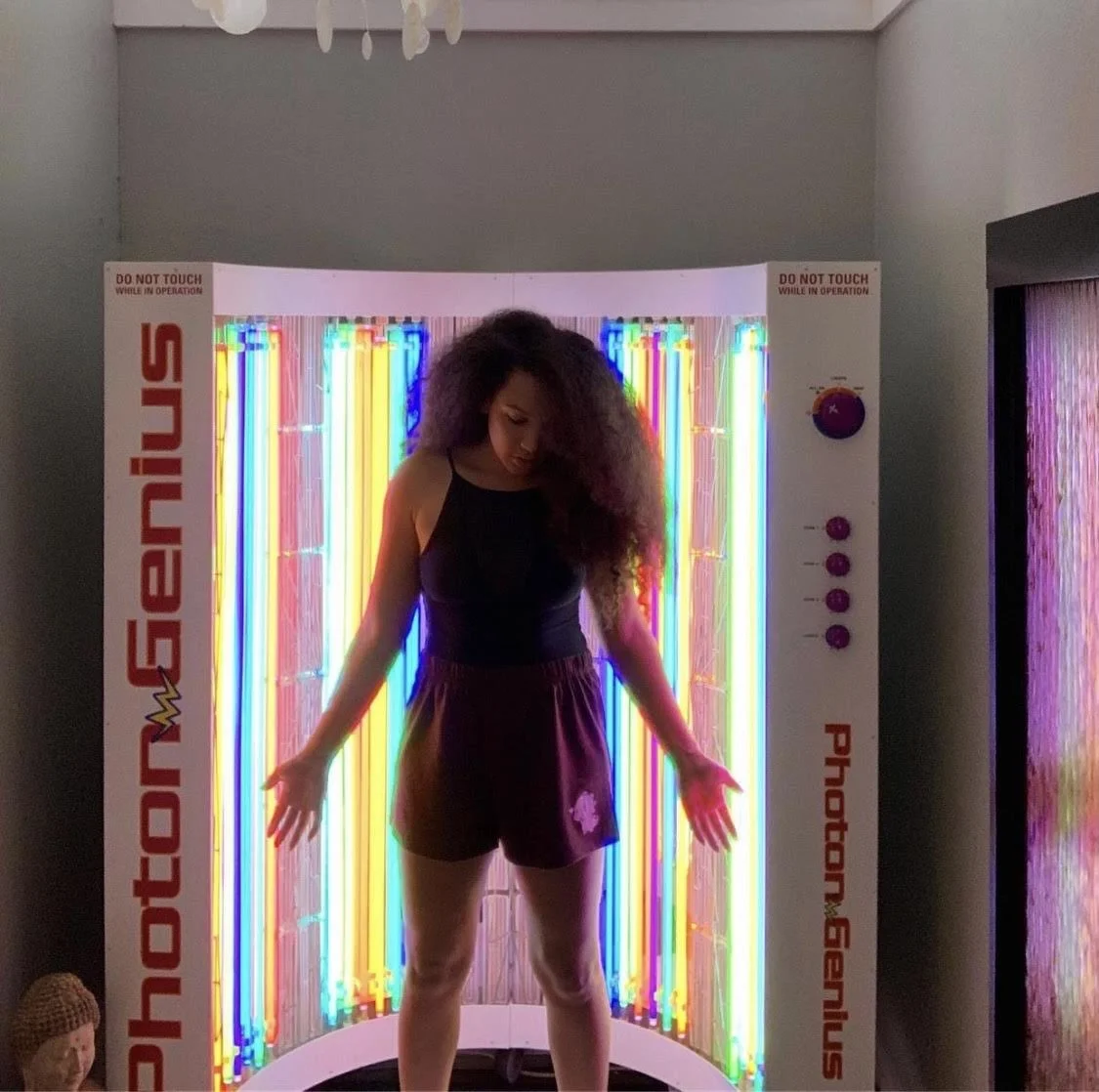 The Super Sauna (Photon Genius) is a revolutionary type of open-design energy infrared sauna for “super-charged” optimal health. It is many times more powerful than traditional saunas, with 72 adjustable infrared emitters that radiate full-spectrum infrared heat (near, medium and far) directly to the body, head to toe, for maximum absorption. The infrared is combined with the Skilling proprietary energy technologies including 120 linear feet of noble-gas energy lights that quietly pulse on and off, and is synergistic with the infrared. The open design makes sessions easy and flexible. Users can stand and sit, move around, do yoga or other gentle exercise, and it’s wheelchair accessible.